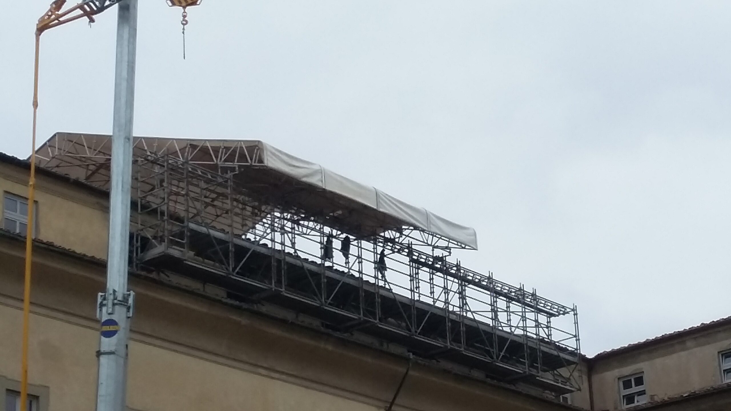 Copertura provvisoria scorrevole su binario realizzata nel 2017 presso Prato.